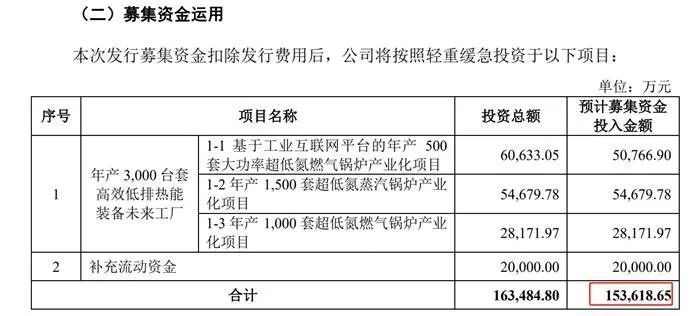 本次IPO,居里热能计划募集资金15.36亿元,主要用于未来年产3000套高效低排放热能设备的工厂,以及补充流动资金。
