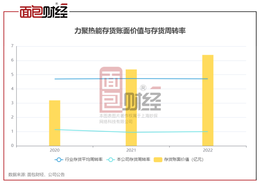 在收入增长的同时,居里热能的库存规模也在逐年扩大。2020年至2022年,居里热能存货账面价值分别为31967.02万元、53703.09万元和63918.32万元,分别占总资产的24.43%、33.62%和32.10%。