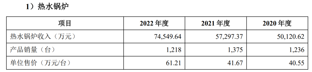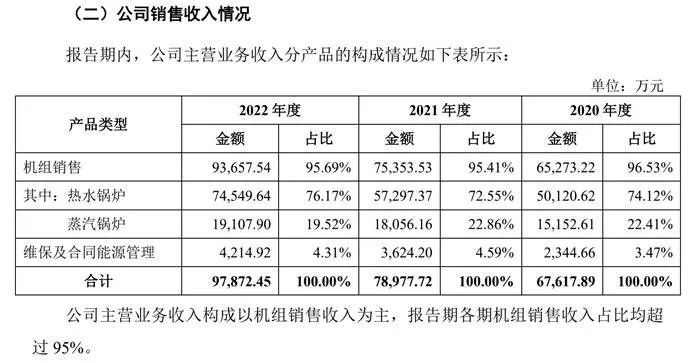 从产品来看,热水锅炉和蒸汽锅炉的收入占比超过95%。
