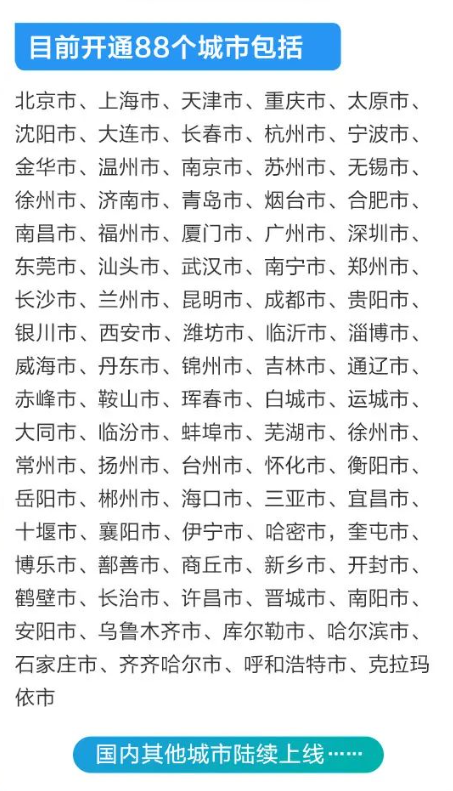 IT之家查询了中铁快递的官方小程序,了解到“高铁快递”服务已经在那里 88 一个城市开放,下面是已经开放的城市列表: