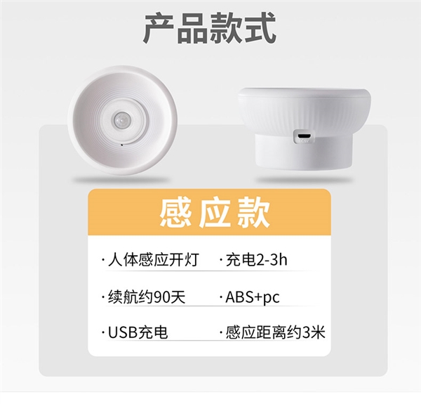 人走即亮,人走缓灭,漫反射光源,0秒智能感应灯亮,环境灯亮不亮。3米 120度大范围感应。