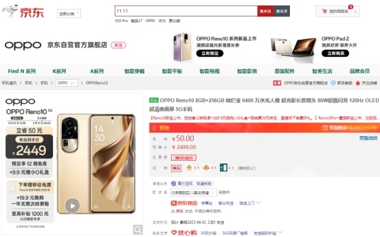 【天极网手机频道】双芯人像,所爱跃然眼前。5月24日,OPPO Reno10系列正式发布,售价从2499元开始,将于6月1日开始销售。OPPO Reno10系列带来了超光影潜望长焦、超光影像引擎和动态光影屏幕,提升了图像、屏幕和轻薄手感。目前,JD.COM已经开始预售。参与预售,可享受高立省50元、移动电源、30天无忧退换、一年延保、店铺以旧换新补贴1200元。还可以加9.9元给小O礼盒,加19.9元买一年无限破屏险,加1元锁定回购补偿200元E卡,五折买两年原厂破屏保。此外,参与OPPO Reno10预售可享受12期免息,参与OPPO Reno10 Pro和OPPO Reno10 Pro 预售可享受24期免息。目前,京东618已开始预售,恰逢京东创业20周年。今年的京东618全面增加了产品、价格和服务,为热门手机提供了30天的价格保证,为消费者带来了“多、快、好、省”的体验。