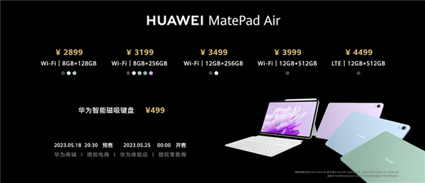 据华为官方消息,华为MatePad Air今日正式迎来首次销售,手价从2799元开始。
