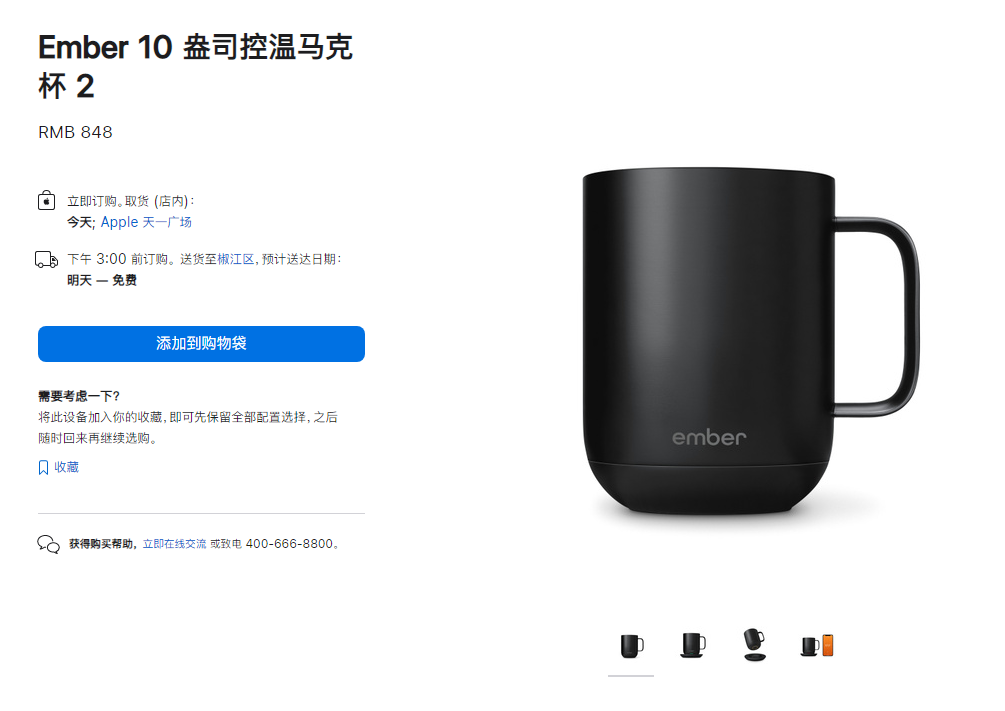 IT之家查询苹果中国官网,没有发现这个旅行杯上架。搜索“Ember”跳出“Ember 10 盎司控温马克杯 目前的价格是2 848 元。