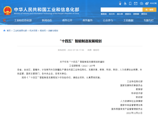 几个月前,由工信部、国家发展改革委等八部门联合印发的《“十四五”智能制造发展规划》中就提到,“十四五”及未来相当长一段时期,要推进智能制造,要立足制造本质,紧扣智能特征,以工艺、装备为核心,以数据为基础,依托制造单元、车间、工厂、供应链等载体,构建虚实融合、知识驱动、动态优化、安全高效、绿色低碳的智能制造系统,推动制造业实现数字化转型、网络化协同、智能化变革。