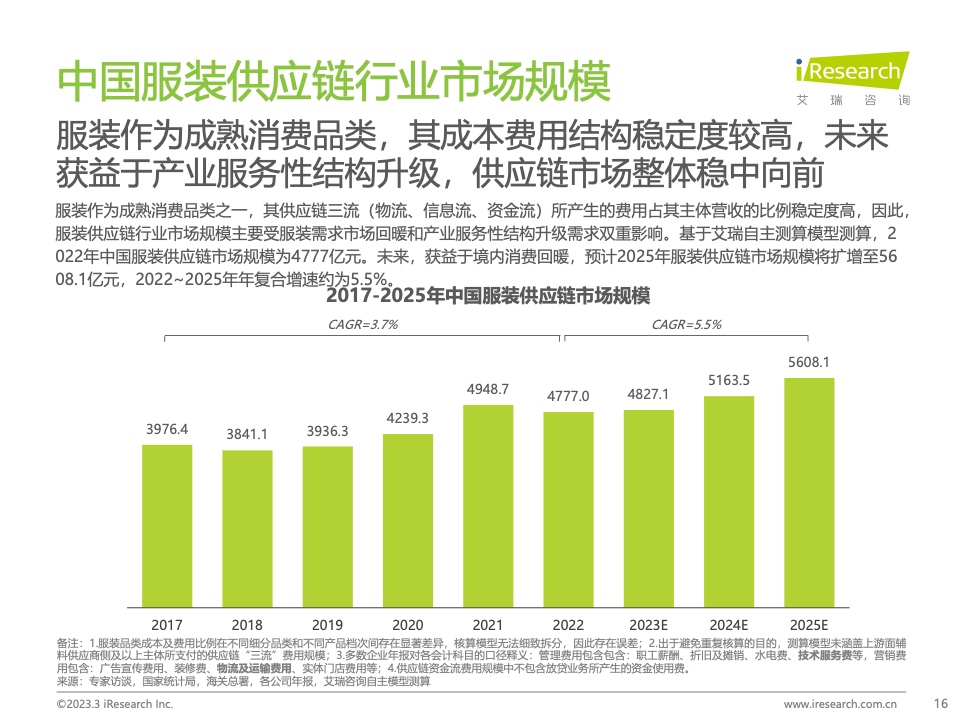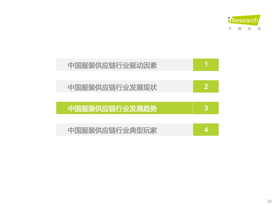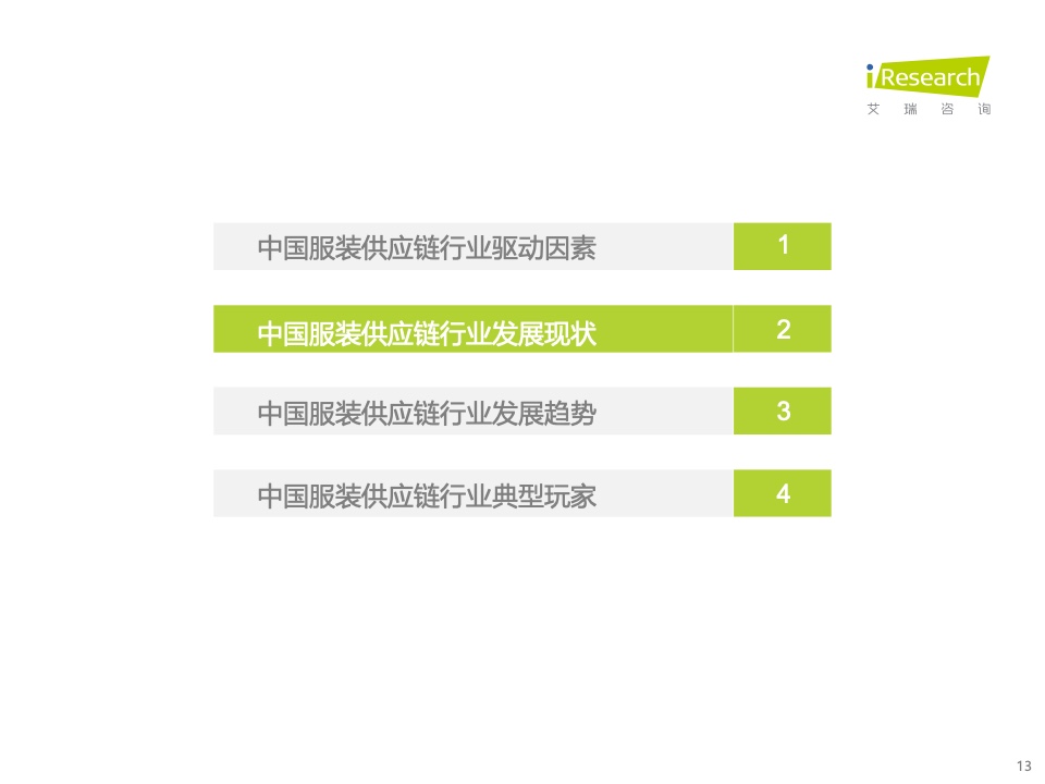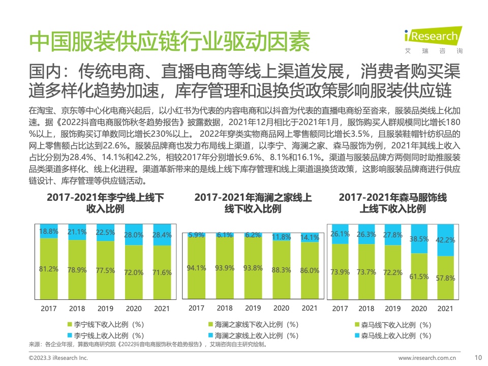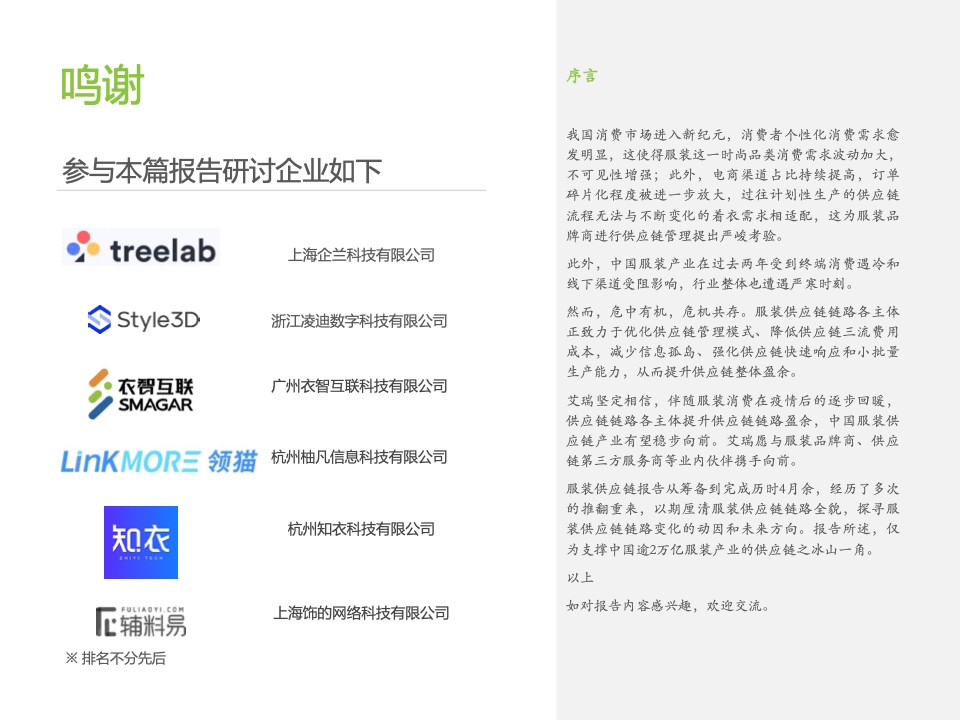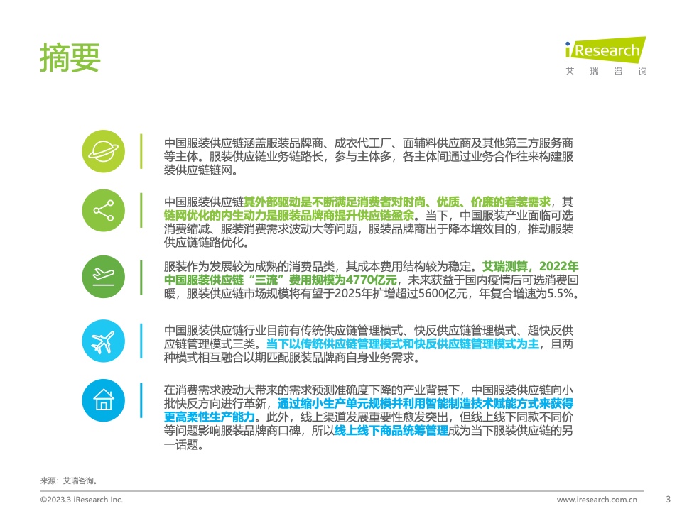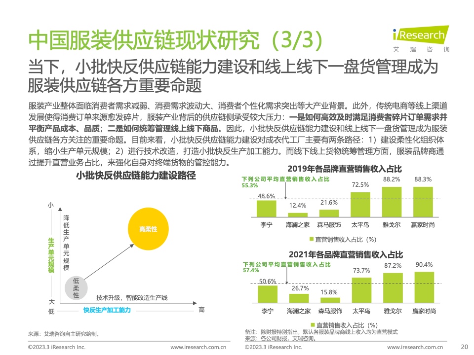 本报告基于对中国服装供应链行业的持续跟踪,详细梳理了近年来服装供应链变化的原因,拆除了服装供应链参与者的差异化能力,总结了服装供应链的变化方向,旨在为行业玩家优化服装供应链模式,提高供应链盈余提供方向建议。