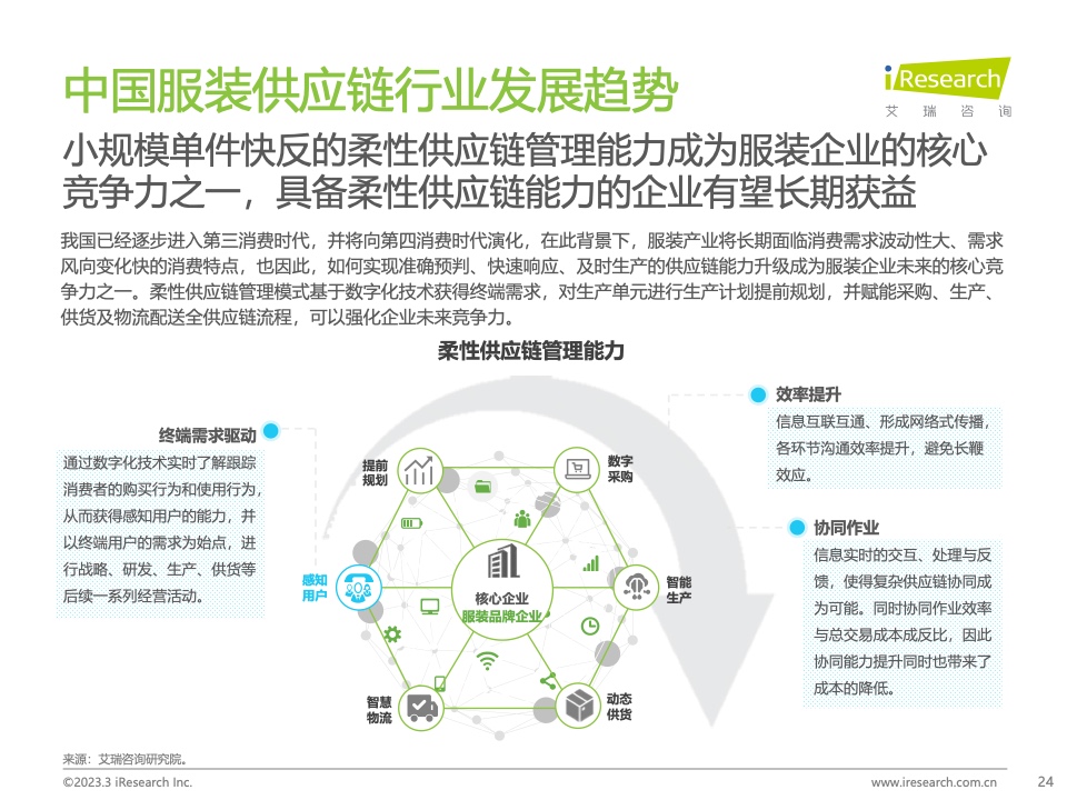 随着我国消费者个性化消费需求和电子商务渠道服装消费比例的不断增加,服装消费需求波动增加,订单碎片化程度增加。服装品牌希望提高供应链管理水平,以满足不断变化的服装消费需求。