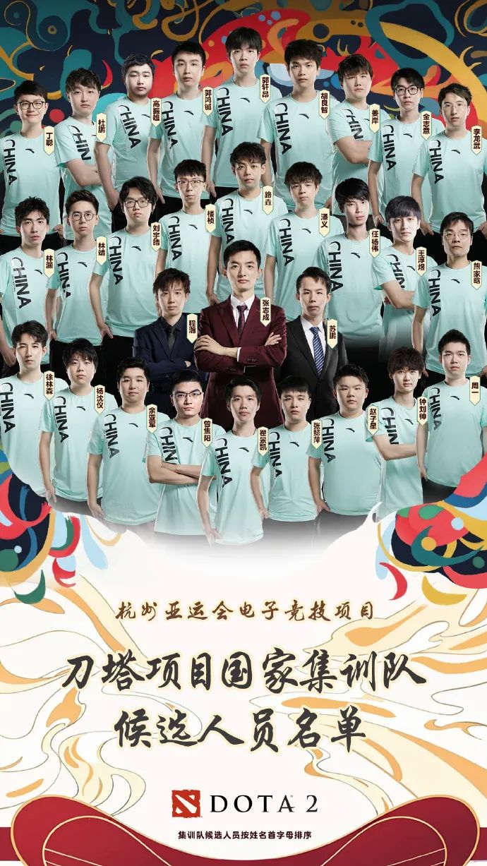 根据DOTA2国家服务官方博客,根据第十九届杭州亚运会电子竞技项目国家培训队员推荐相关说明,综合考虑教练和运动员最近的国际竞赛表现、国内联赛表现、综合专业素质、意愿,并通过讨论审核,报杭州亚运会电子竞技项目选拔领导小组备案,杭州亚运会电子竞技(刀塔项目)国家训练队候选人名单已正式公布。