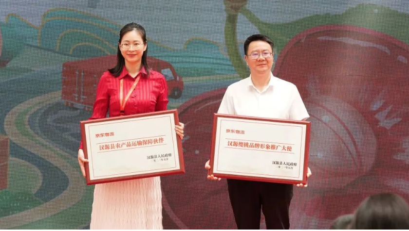 在新闻发布会上,县委常委、宣传部部长邓飞宇向京东物流授予“汉源县农产品运输保障合作伙伴”称号和“汉源甜樱桃品牌形象推广大使”称号;副县长钟攀代表汉源县人民政府与京东物流签署了《四川省汉源县人民政府京东物流战略合作框架协议》。龚荣高,四川农业大学园艺学院副院长、博士、教授、博士生导师,以“汉源优质管理模式”-以中国甜樱桃精品口味为主题,推广汉源甜樱桃。京东北京总部还与汉源原产地进行了现场直播连线,现场直播出发仪式及产地情况。