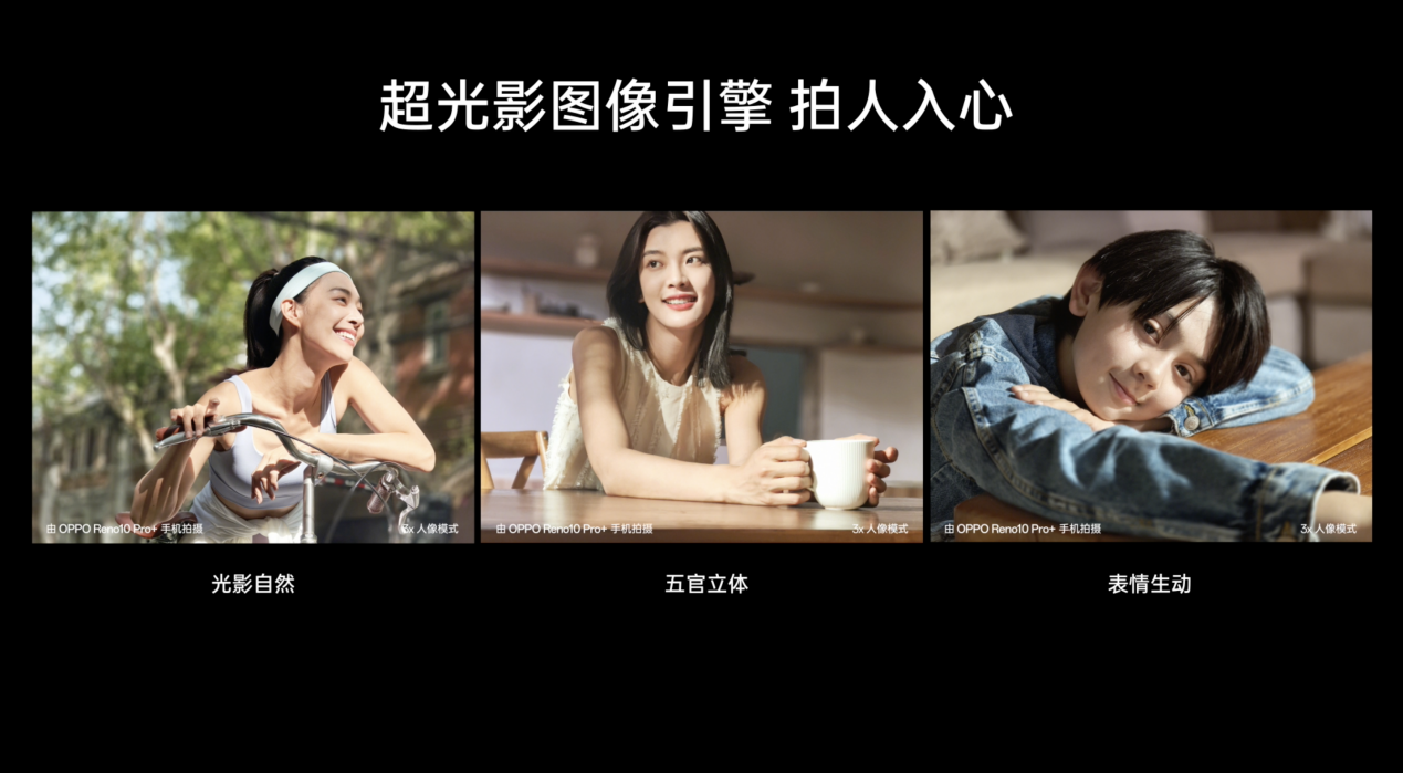 OPPO认为,人像是用光的艺术,忽视光影,就是忽视人像的全部。因此,真正的纹理肖像应充分利用计算能力,恢复正确的光影关系,使光影自然,面部特征三维,表达生动。OPPO Reno10 该系列已完全继承 OPPO Find X6 该系列首发的超光影像引擎可以计算出人物主体、光线和环境之间的真实光影关系,用光影冲破平面的束缚,使每个肖像都具有立体感、自然感和生动感。告别传统肖像,粗暴地拍摄黑暗,造成假白、假亮、假面的失真效果。