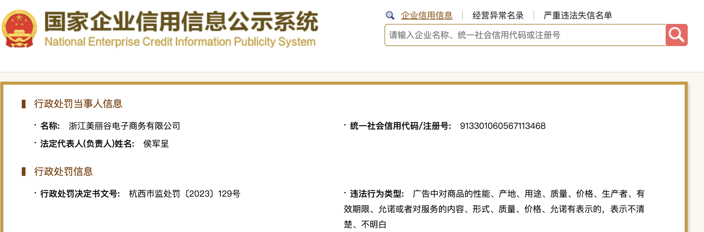近日,珀莱雅全资子公司浙江美丽谷电商有限公司(以下简称“美丽谷”)被处罚20万元。从处罚公示信息来看,原因是珀莱雅双抗精华2.0的推广和宣传部分标注了“2%麦角硫因和1%脱羧肌肽”,产品配方中麦角硫因和脱羧肌肽纯物质的实际质量百分比分别为0.001%、0.1%。