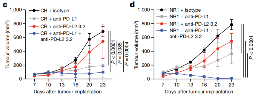 事情应该在这里结束,也就是说,在PD-1通道调节T细胞活性的过程中,肠道细菌可以抑制PD-L2,从而帮助免疫治疗。但研究人员观察到,用药物阻断PD-1和PD-L2比单独阻断PD-1有更好的抗肿瘤反应。这意味着除了与著名的老搭档PD-1合作外,PD-L2还有其他调节肿瘤免疫的方法。