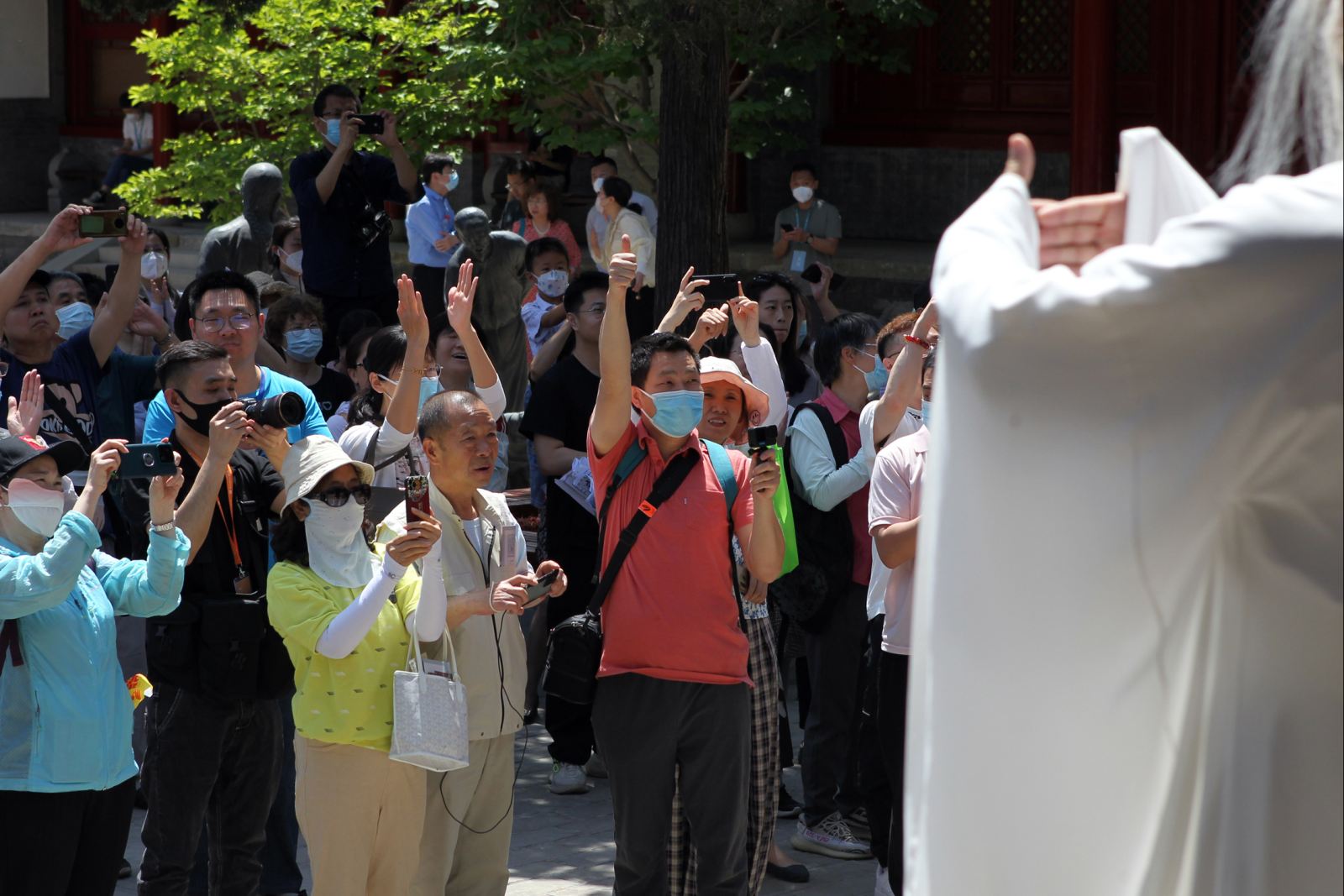 据悉,宣南往士是西城区首次探索沉浸式戏剧导游的新展览活化路径。导游打破了演员与观众之间的空间界限,改变了博物馆“你说我听”的传统解释和参观模式,以戏剧体验的形式展示展览内容,让观众感受到宣南的变化,从多个角度、多样化地满足展览的需求。(王欣 摄影报道)