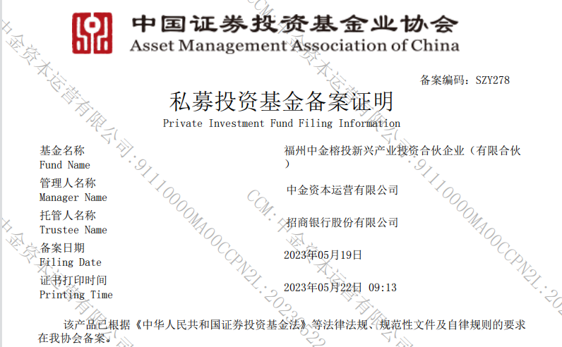 投资界(ID:pedaily2012)5月24日,近日,福州中金融投资新兴产业投资合伙企业(有限合伙企业)(以下简称“中金融投资新兴产业基金”)完成中国证券投资基金业协会登记备案。该基金由福州国有资产集团旗下的福州国有企业产业发展基金有限公司(以下简称“市产业基金”)与中金资本运营有限公司(以下简称“中金资本”)共同设立,规模6亿元,重点关注高端制造和先进技术、数字经济、科技、医疗卫生等战略性新兴产业。