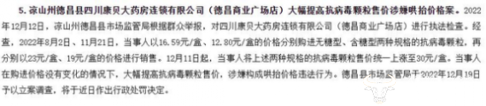 其中,根据凉山州德昌县四川康贝药房连锁有限公司(德昌商业广场店)涉嫌哄抬抗病毒颗粒价格大幅提高的案例,当事人在购买价格不变的情况下,大幅提高抗病毒颗粒价格,涉嫌构成非法哄抬价格。