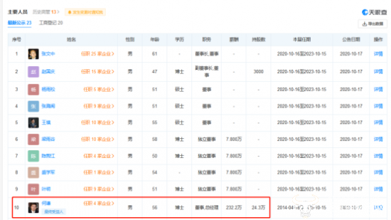 根据天眼查APP,何谦去年的工资高达232.2万元,在公司工资榜上排名第一,待遇相当不错,远高于其他副经理获得的100多万元。