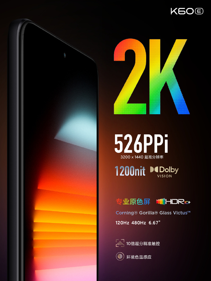 该机搭载 6.67 英寸 3200×1440 三星 E4 OLED 直屏,支持 120Hz 刷新率,480Hz 触摸采样率,8bitt 深色,局部峰值亮度 1200nit。