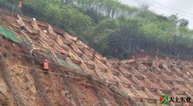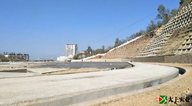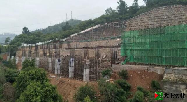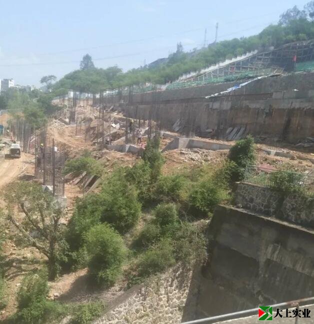 后山被新挖出的陡坡,长达290多米,平均高度近30米。为预防滑坡,投入大量资金,做庞大的空格梁护坡工程。昼夜施工,历时四月。