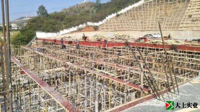原来, 这里的原地势前面深沟纵横,后面山高地险,本不适合建足球场,但不在这里建,就没地方建。于是霸王硬上弓,上部大挖山,做空格梁护坡; 中部大填沟; 下部大架空,建体育场馆。