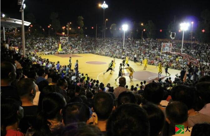 从球场奠基算起,历时8年之久,一个边建边用,一边用一边修的灯光球场完美了,黄土地面,阶梯看台,看台下是狭窄的更衣室,40盏铁罩灯用钢丝穿连,南北高悬,夜里比赛如同白昼。