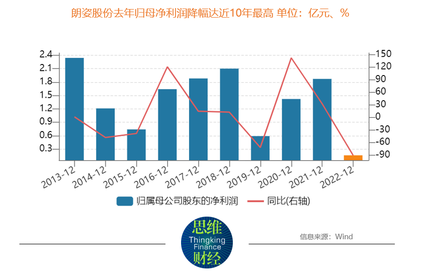 年报显示,2022年朗姿股份收入38.78亿元,同比增长1.19%,归属母公司净利润1607.59万元,同比下降90.73%,同比下降1.87亿元。年度成绩单发布后,深圳证券交易所发出询价函,询问经营情况、成本增长、新收购公司业绩及库存降价计提情况。