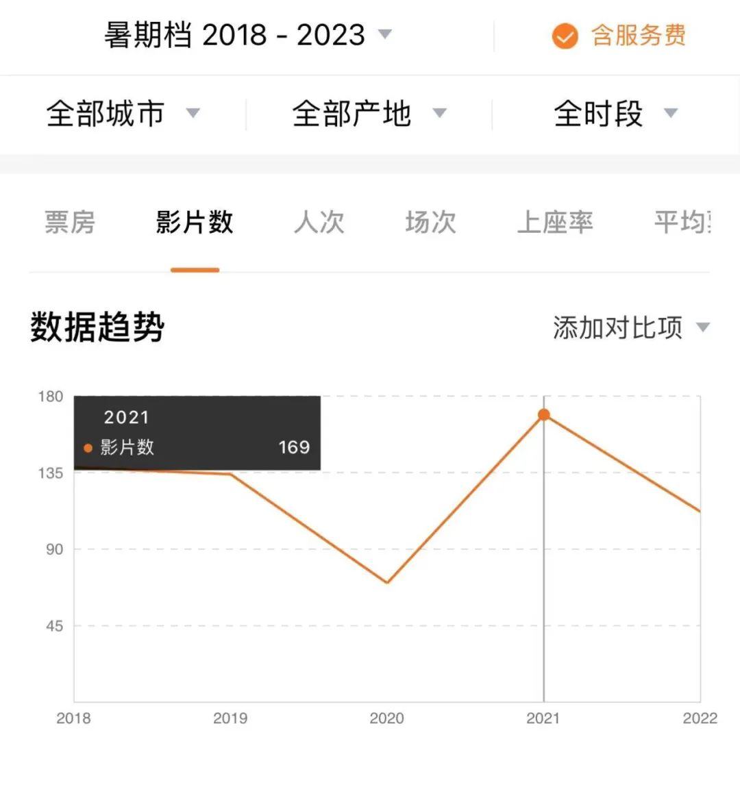 纵观近五年的暑期档,除了2021年高点的169部暑期档,只有70部新片在电影市场复苏初期的2020年暑期档,今年暑期档的新片数量还有一定的距离。