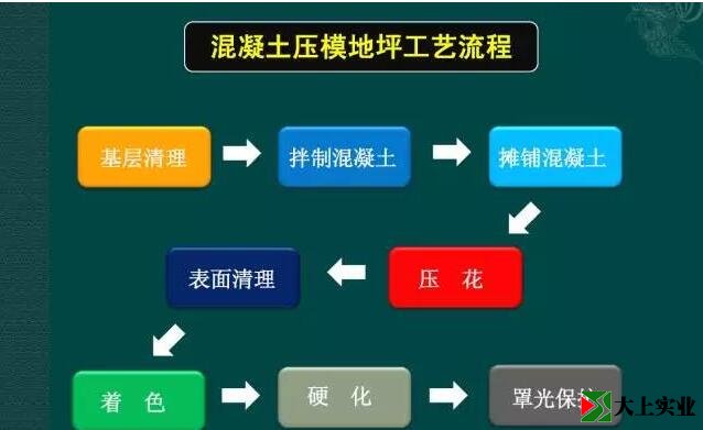 东西再好,施工成本过高也会让人退却的,那么压花地坪麻烦吗?具备流程如下图所示↓