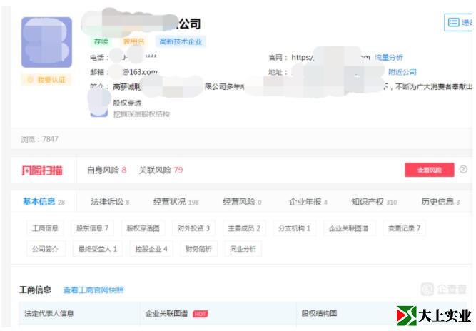 一、通过APP查询。例如,天眼查、企查查等各类查询软件,搜索该公司注册时间,员工人数,注册资本、简介了解企业规模,一般稍微大一点的公司,相对来说,不管是产品质量还是售后服务,更有保障。其次,看下是否存在法律纠纷之类的,如果有,则需慎重选择。例如下图。