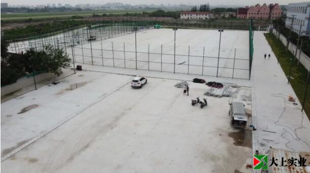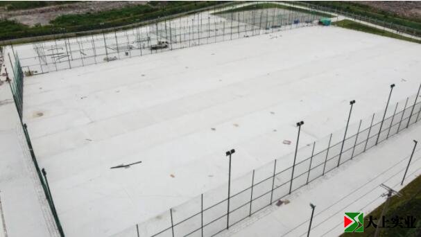 球场全景如下图所示,右边应该是足球场,左边是篮球场!经纬君在周围未找到具体的施工图纸和说明。
