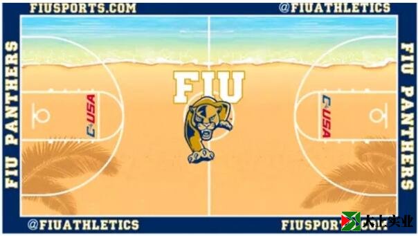想要去到一个温暖、舒适的沙滩吗?那么你都不用将视线从佛罗里达国际大学的篮球场上移开。如此的设计标志了这所大学南佛罗里达的地理位置。早在2013年,学生们便决定采纳新创意,重新在篮球场上做一个大胆的设计,这种想法自然得到了很高的关注。在2014年9月球场因为校外事件导致篮球场受损,但是幸运的是,现在学校的篮球场和它的设计都完好如初!
