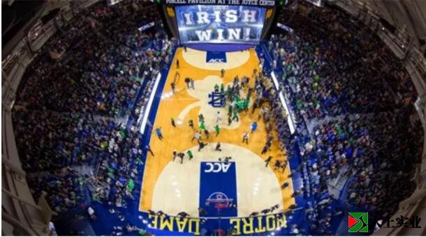 谁说人家是战斗民族爱尔兰人了,人家可是在篮球场中央放了一个巨大的三叶草呢!怎么想都是萌萌哒~双色调的荧幕和深蓝色的底色将所有的一切都紧密的联合在了一起。篮球场的安装同时也是乔伊斯中心大规模翻新的主要组成部分。塞尔管在2009年开业,从那时起学校就已经在考虑篮球场的设计了。