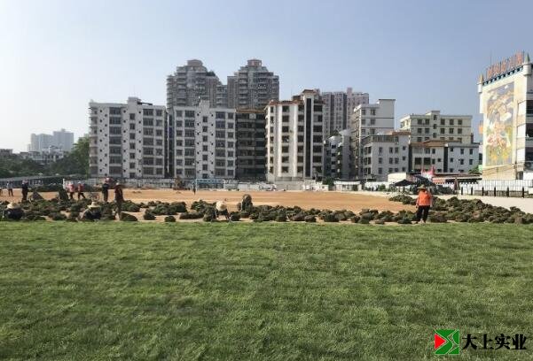 这批草皮是刚从中山市运送回来的,大概8000平方米,工人在早上7点多就开始忙碌工作。由于前段时间,工人已对足球场的泥土进行了施肥,目前可以直接铺设,大概一个星期可以完成这项工作。