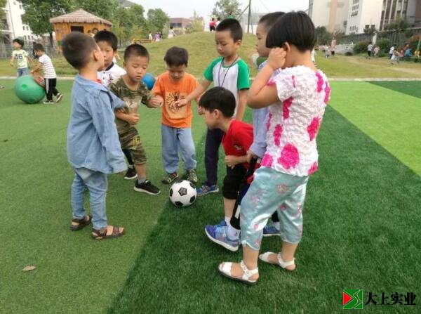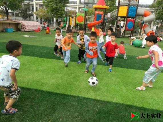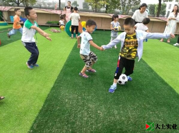 准备就绪,对于人工草坪怎么铺设,上兴中心幼儿园与施工方进行了反复论证,提出了独特要求:既要有显性的运动感觉,又要有隐性的教育功能。施工方克服困难为幼儿园量身定做了足球效果的人工草坪。