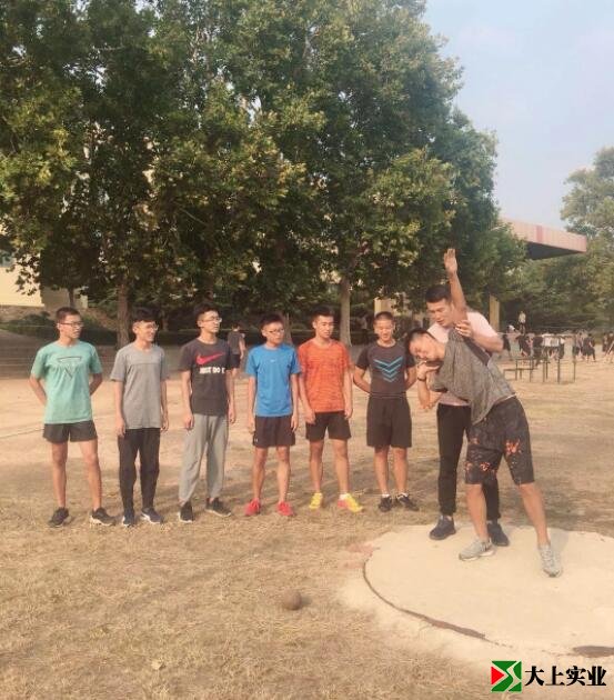 铅球训练,于富海老师指导握球发力动作要领。