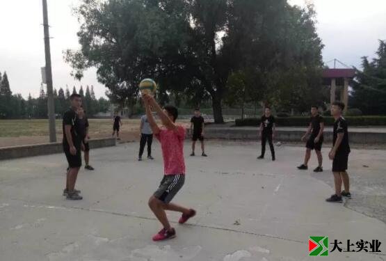 王舵老师指导学生在水泥场地进行排球练习。
