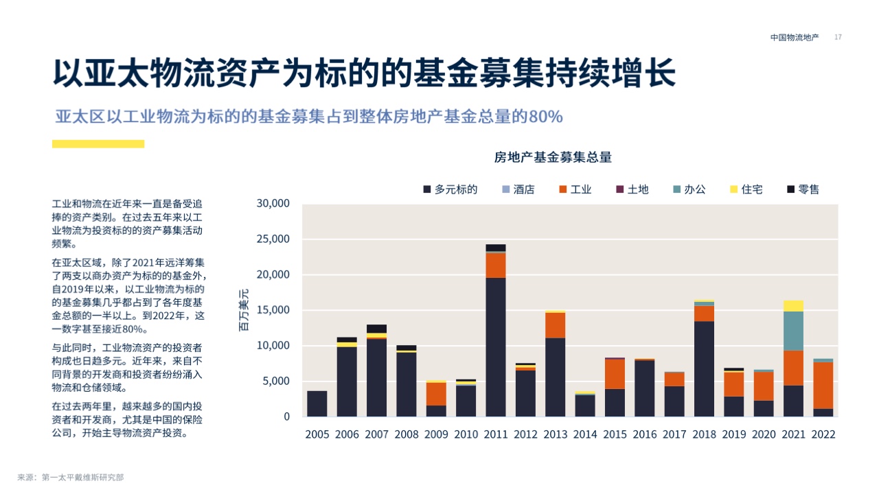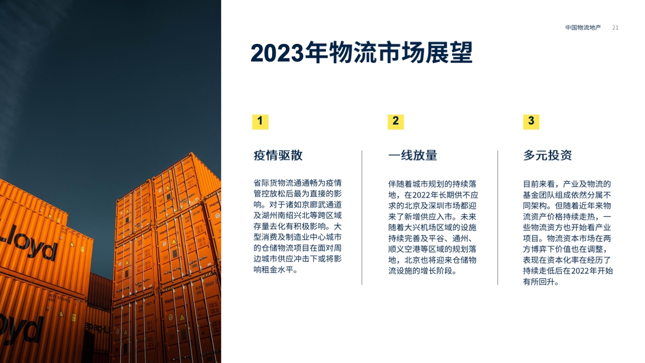 第一太平戴维斯发布了2023年中国物流报告,将从宏观市场、区域市场、投资市场和未来趋势四个部分带您分析中国物流房地产的趋势和前景。