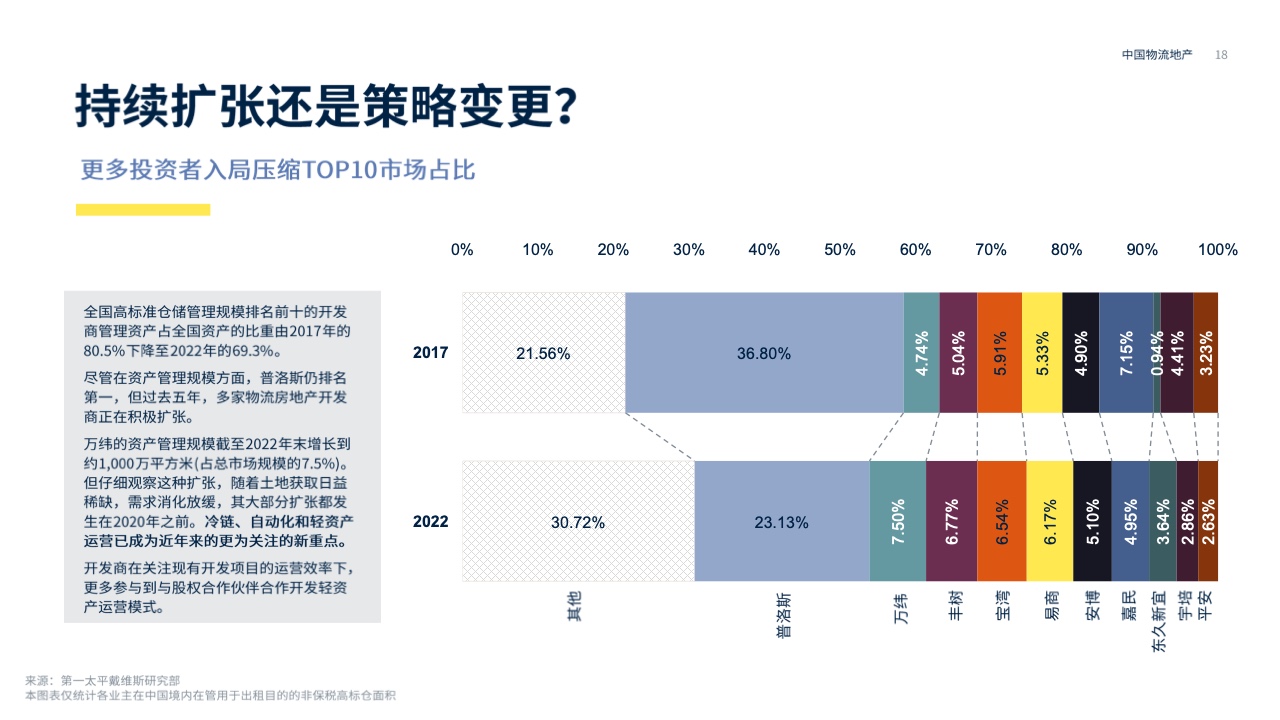 目前,工业和物流基金团队的组成仍属于不同的结构。然而,随着近年来物流资产价格的持续上涨,一些物流投资者也开始关注工业项目。在双方的博弈下,物流资本市场的价值也在调整,这表明资本化率在2022年持续下降后开始回升。