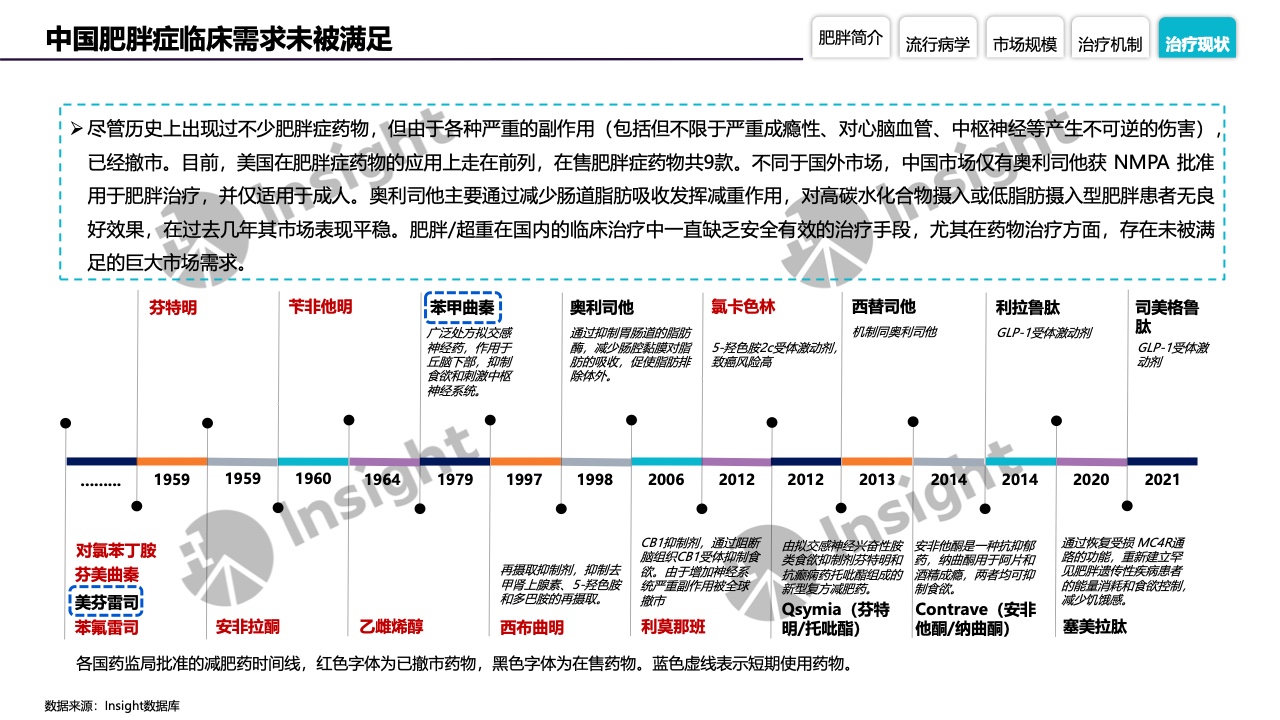 就我国肥胖药物的未来市场趋势而言,由于西布曲明等尹鉴处于领先地位,安全性是药物研发中需要考虑的因素。在有效性方面,肥胖需要长期管理,停药后容易反弹,因此长期治疗药物将成为研发的重要方向。