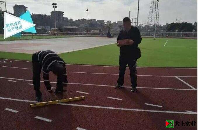 4.合成面层跑道与基层的粘接应牢固,无脱胶和凹凸现象;