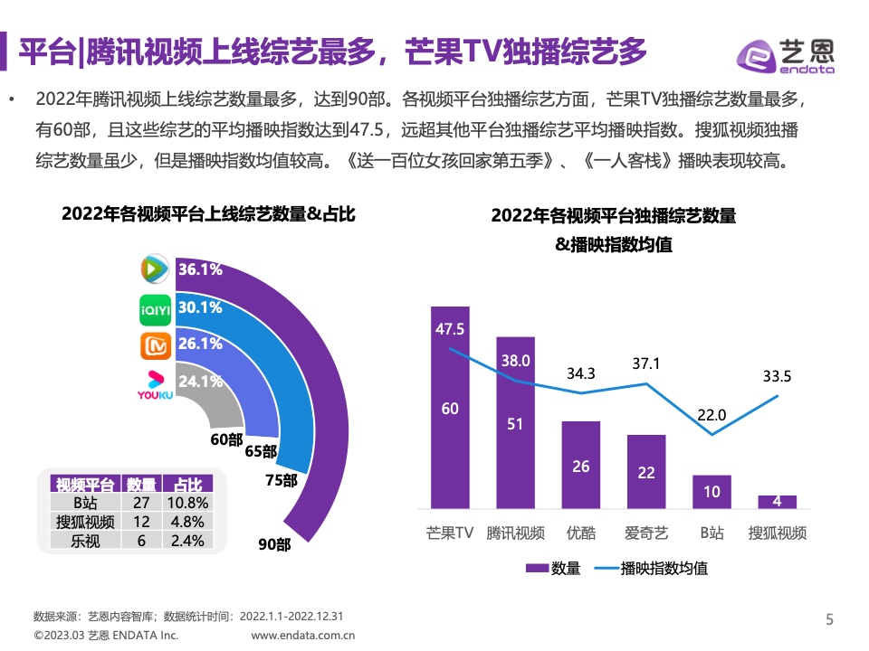 2022年的综艺市场有忧有喜。令人担忧的是,在线综艺节目数量下降,观众可以选择的节目减少;令人高兴的是,综艺节目追求精耕细作,播出表现上升,降本增效效果明显。面对更严峻的市场挑战,综艺节目的人们做出了积极的回应。2022年,怀旧综艺节目盛行,音乐成为最重要的情感载体。