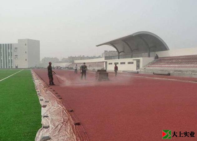 通常在塑胶跑道施工之前必须先做好排水措施,并提前查看天气预报,准备好防雨篷布,施工过程中突遇下雨时及时将其覆盖。已经被雨水淋湿导致不能固化的区域必须铲除掉,并将铲除的区域重新打磨并清理干净,然后按塑胶跑道施工的工艺流程重头再来。虽然这样会造成一定的材料和人工损失,但这是唯一的解决方法,切忌不可将就保留,留下的诟病会使后期损失更严重。