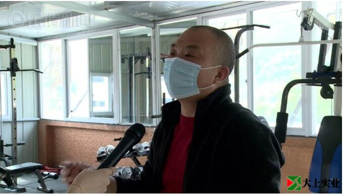 这边以前是我们办公楼五楼的阳台,以前都是空的,我们村里有一个做橡胶企业的企业家,他过来自己出钱把这里建起来,给大家免费健身,平时都可以过来。