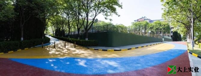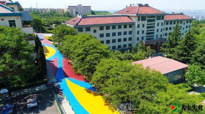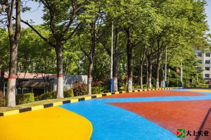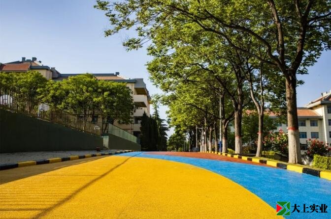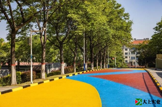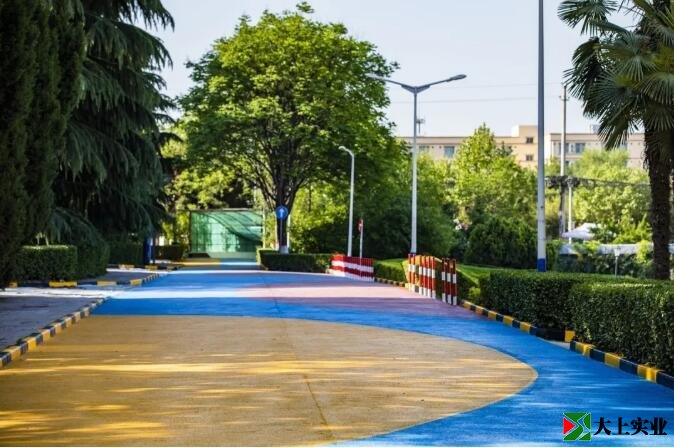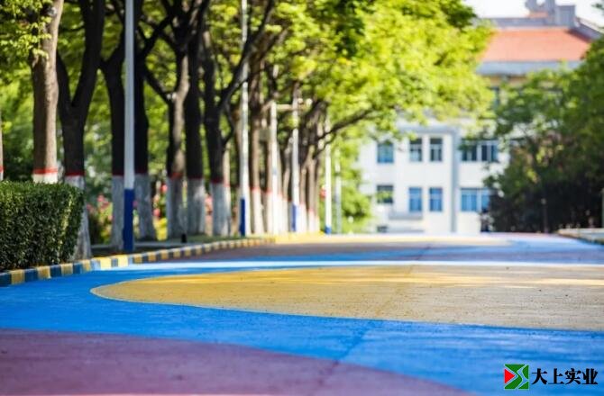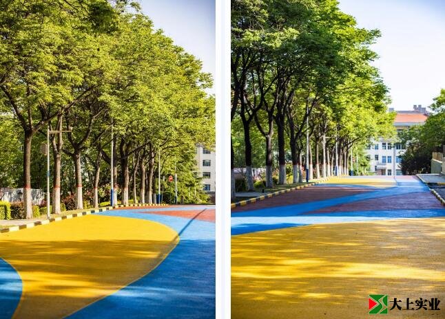 “今年四月,为美化校园,给校园增添色彩,展现大学生的青春与活力,学校决定对金石东路进行维护改造,要求在学生返校前完工。路面采用彩色透水混凝土材料,透水性好,抗紫外线,耐磨度强,且美观亮丽。在炎热的天气下,我们白天黑夜加班加点,提前完成道路改造任务,用色彩缤纷的道路欢迎同学们回家!”