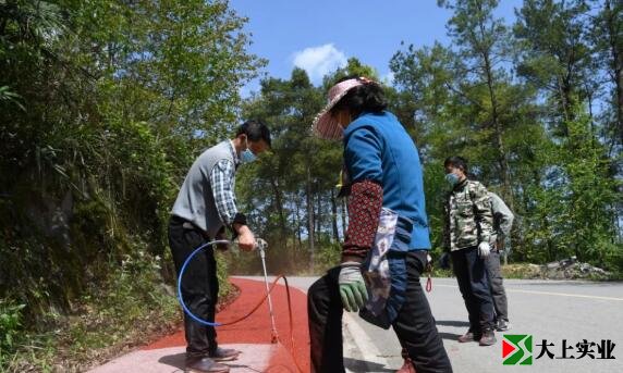4月14日上午,在桃花源街道田家盖附近的二酉山人行步道终点,几名工人正抢抓晴好天气,喷涂路面保护剂。