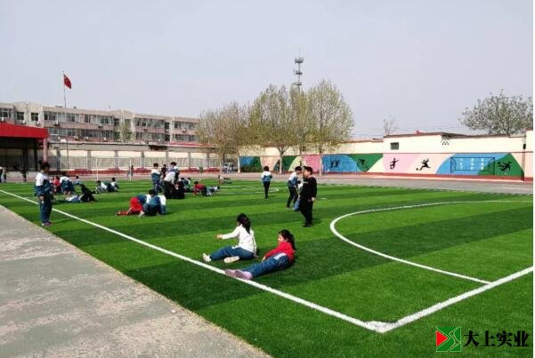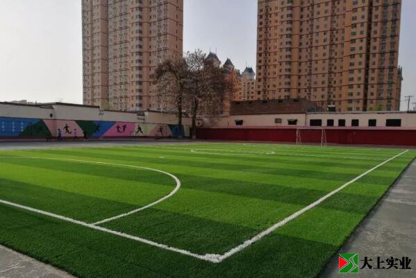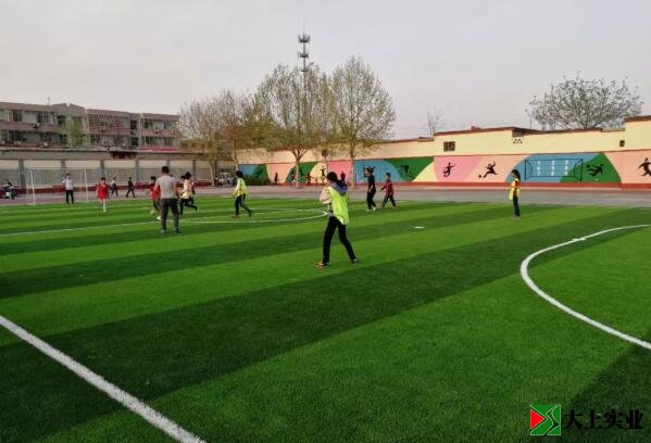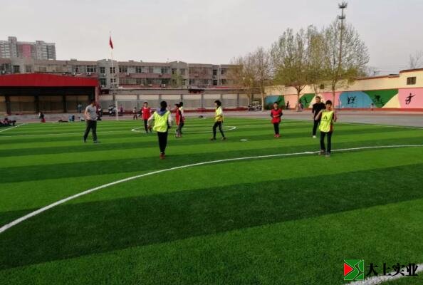 此次修建的是标准的“五人制”足球场,长37米,宽22米,总投资近10万元。经过3天清明节假期赶工,一个按照五人制比赛标准设计建造的全新足球场正式落成。人工草坪足球场有两条边线、两条球门线、两条禁区线以及中线和中圈均为白色,草坪草绿与浅绿相间,线条清晰,色彩鲜明。