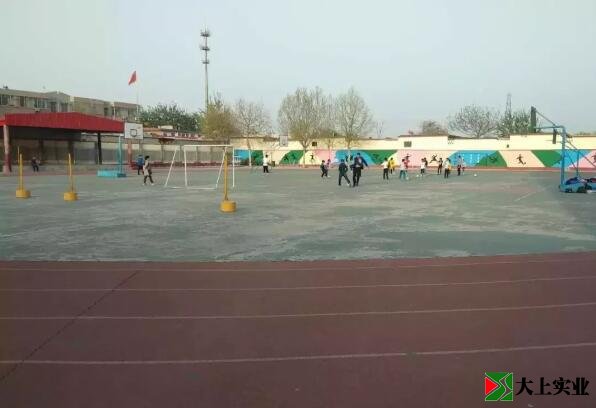 据悉,由于资金限制,实验一小的操场在2010年建设之初,操场跑道是塑胶铺设,中间篮球场、足球场、羽毛球场是用运动漆涂设。几年过去,油漆大部分已脱落,水泥沙子暴露,学生打球、踢球、跑跳摔倒后时容易受伤,存在安全隐患。