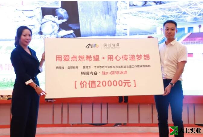 大会中启斯教育现场向“绵阳市青少年活动中心”捐赠图书2000本,通过“江油市对口帮扶布拖县脱贫攻坚工作前线指挥部”向“基只乡中心校”捐赠硅pu篮球场地一座。