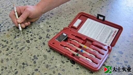 如果可以用7、8或9号笔刮擦样品,则地面很硬。5和6表示中等。而2、3和4是柔软的。中国境内的大多数混凝土的莫氏硬度等级为5至7。使用德立固固化剂,可以到8甚至更高等级。