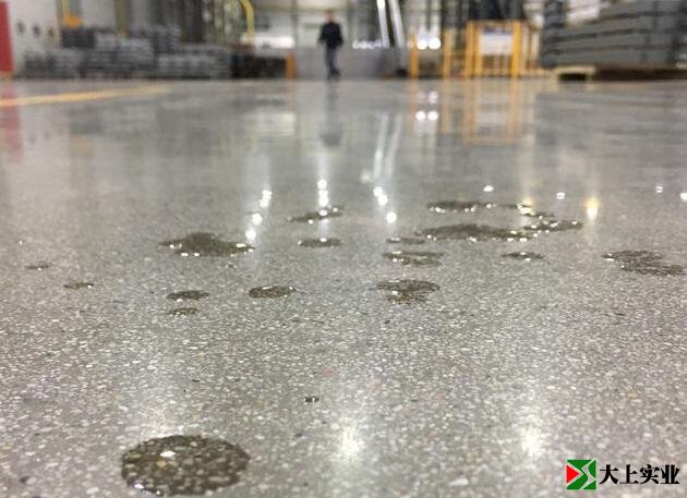 6,抗 渗:水磨石地面混凝土密封固化剂能有效渗入到水磨石内,并与其发生化学反应,锁住里面的毛孔,对混凝土表面起到永久的密封效果,能有效抑制水、油和其它的表面污物进入混凝土内;
