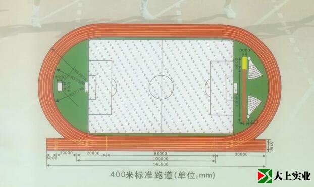 随着科学技术的发展,体育场地跑道表层的结构,从最初的土层发展到煤渣、石灰、粘土混合层,二十世纪六十年代初又出现了塑胶跑道。八十年代田径跑道弯道的半径从36米到37.898米,又发展到36.50米。经验表明,大多数400米半圆式跑道被建成弯道半径为35米到38米之间便是适宜的,国际田联提议尽可能修建半径为36.50米的“400米标准半圆式体育场”。跑道宽度一般应设8~10条。至少应有6条。标准宽度1.22~1.25米。
